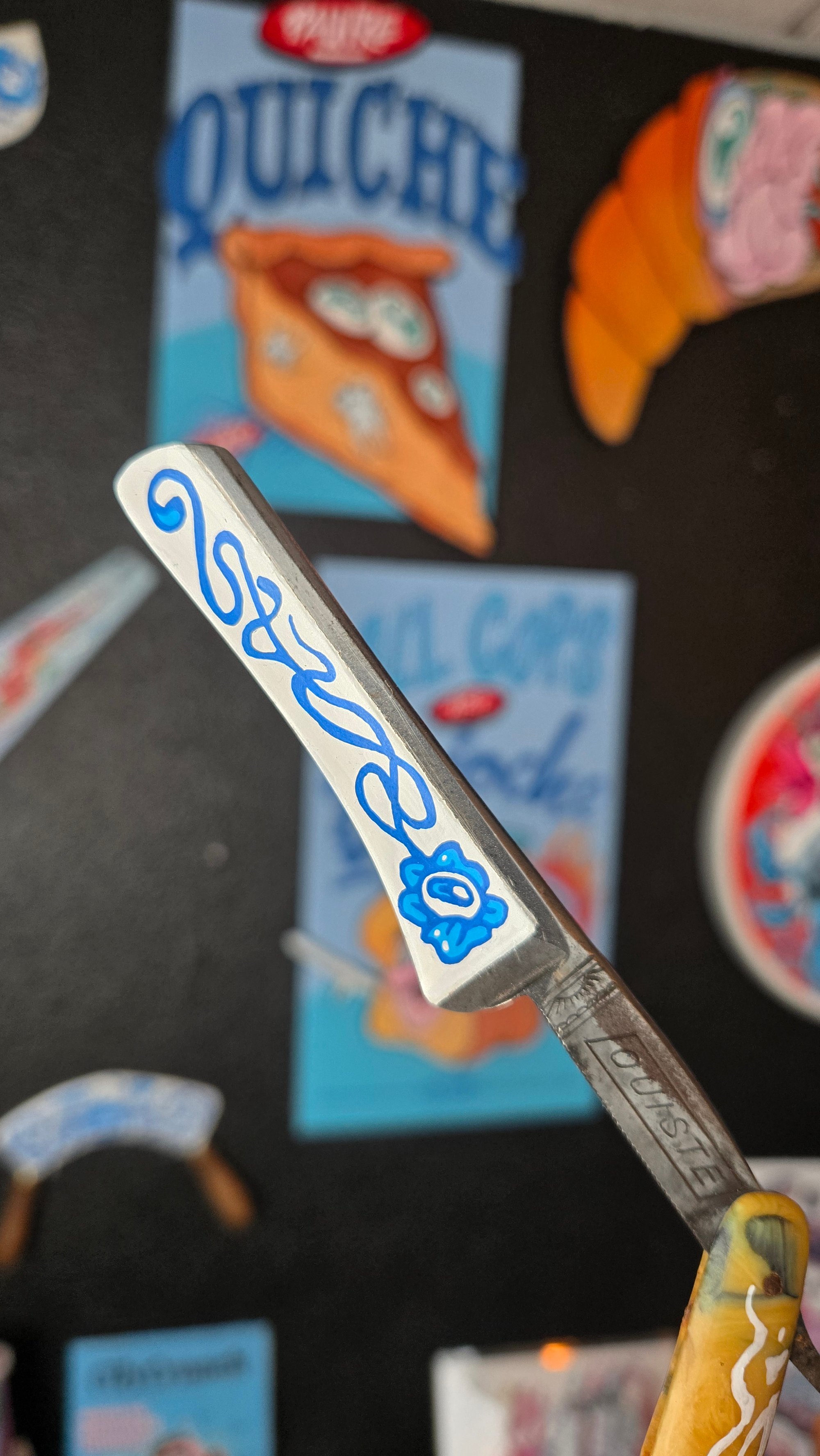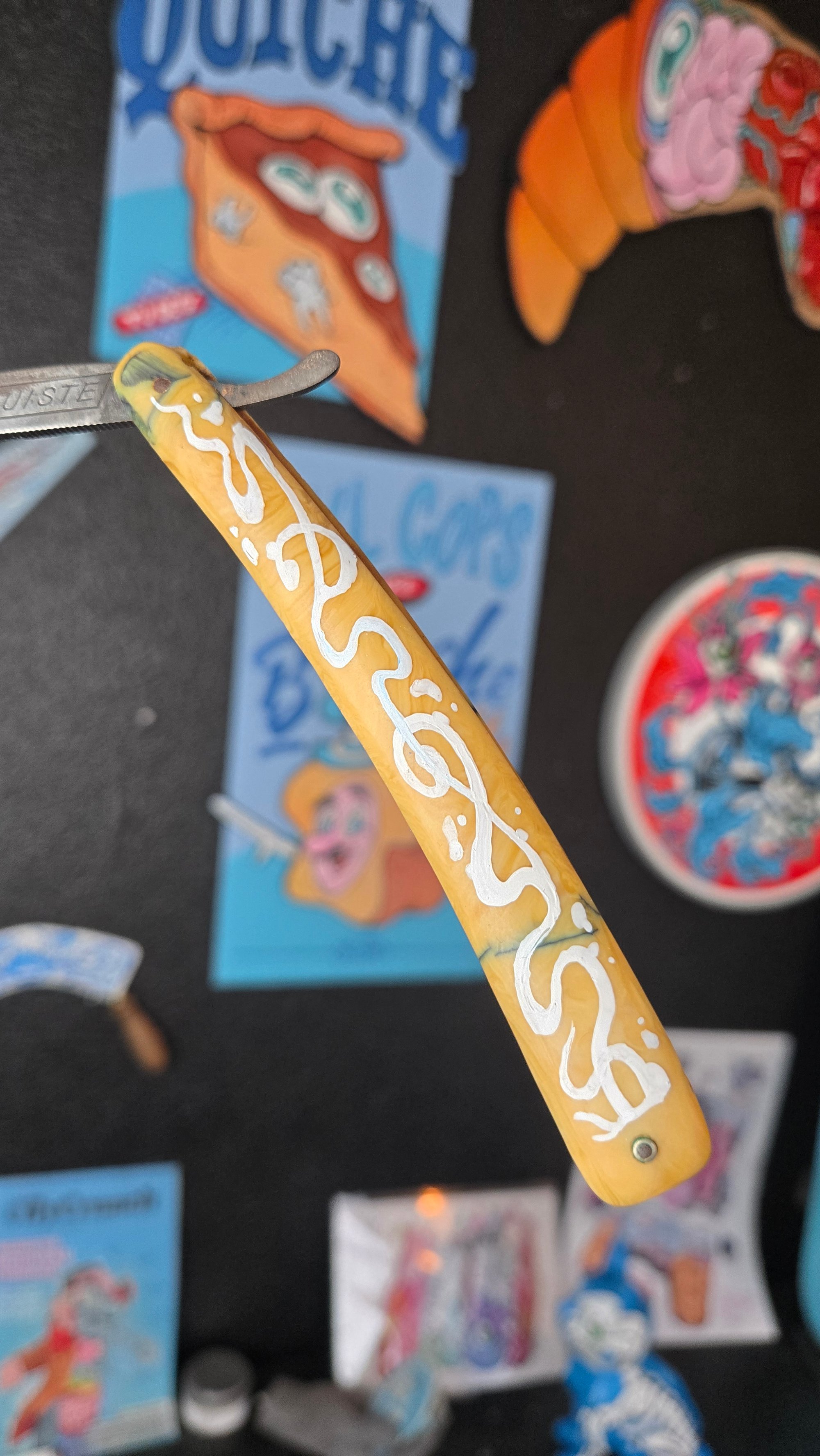 **Pièce unique ** Rasoir vintage customisé à la main au posca et à l'acrylique. Signé au dos.